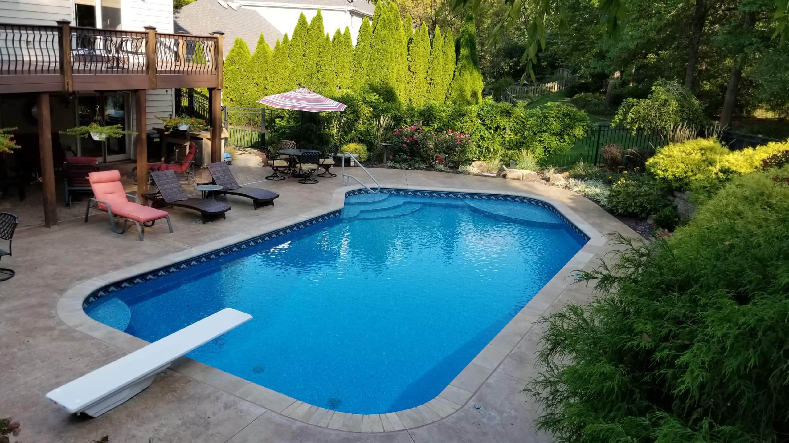 Interior finishes are something that go bad over time on all pools. Concrete pools, the tile/ plaster is something that has to be replaced, typically after 10-20 years. On vinyl liners, those need to be replaced after 7-15 years and fiberglass pools will start to fade after 10 years or so. Why the span you ask? Well, that depends on several things. The main way to keep our surfaces durable the longest is by maintaining water chemistry. The reason we offer winter pool service is simply because even during the winter, your pool is still exposed to that water and good water chemistry is still important, even when the pool is not being used.